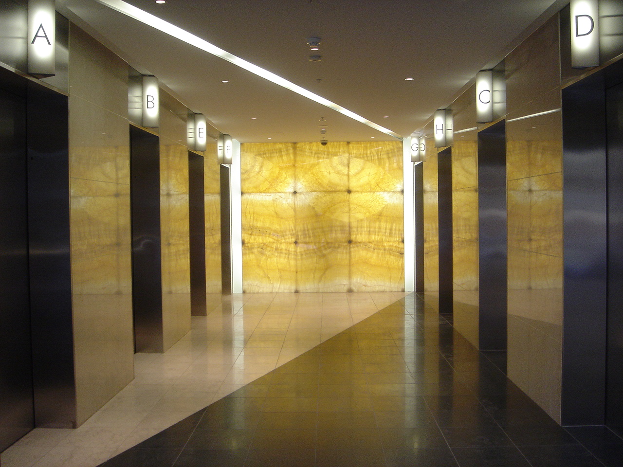 Glass walls surrounding the old podium are respecting its original design and are supported by stainless steel rods.