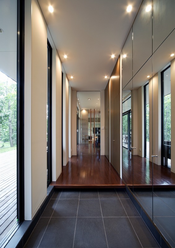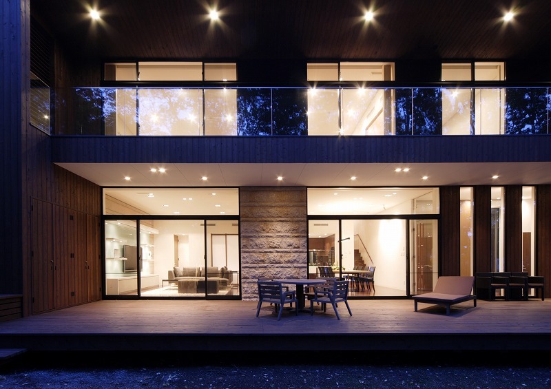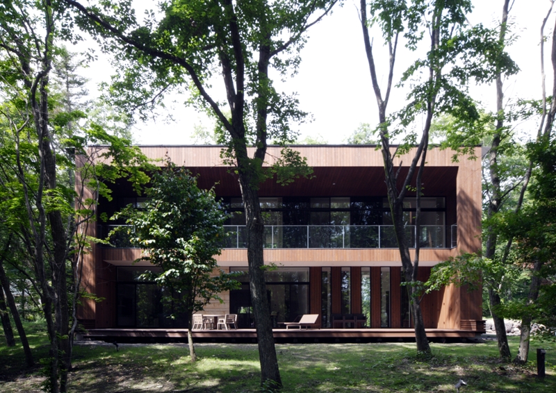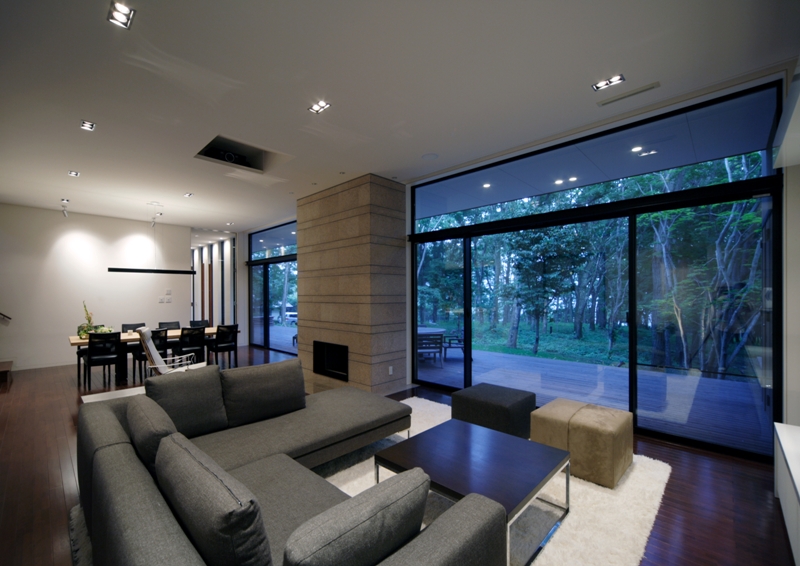 --“ú–{Œê--Karuizawa VillaAddress: Karuizawa, Nagano, Japan Concept was to maximise views to the trees and to have open and spaceous feel whilst providing a space like hammock. Natural materials such as timber and limestones were used to clad the outside and inside to be consistent with the environment.